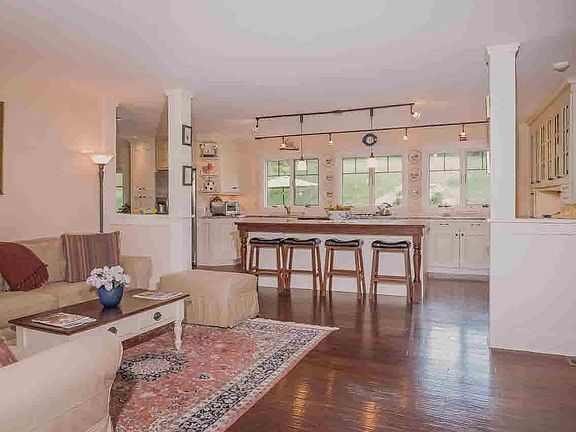 Captivating Builders own custom built Arts & Crafts/Shingle Style home totally rebuilt with finest materials in 20008. Open floor plan with lots of windows allowing for natural lighting. Large gourmet kitchen with granite, extra large kitchen island with wood top, wall of windows overlooking patio, gardens, koi pond and waterfall. Two first floor bedrooms each with private full baths. Master suite with his and hers spa like baths. Additional family rm or home office off of Master. Quaker hill area, close to train, cafes & shopping.