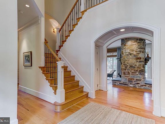 Exquisite New England style 6BR, 6/1BA custom home by Benhoff Builders on 2+ level acres. Signature Benhoff millwork, craftsmanship & finishes. Mahogany Lib w/FP, FamRm & gourmet Kit share pass-thru FP, Kit Fr doors to bluestone Patio. Back stairs to Au-Pair/Office Ste w/Kitchenette. Main level BR & Ba. Finished LL w/BR, full BA, RecRm & Gym. Hot tub, fire-pit & log cabin playhouse w/electric.