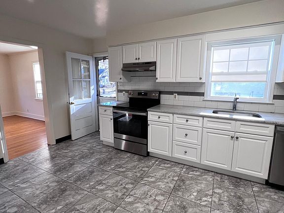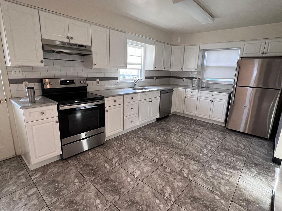 Very spacious 4 bedroom house with hardwood floors throughout, freshly painted, up dated eat in kitchen with stainless steel appliances incl., dishwasher, refrigerator, tiled bath, fished basement with washer dryer, yard, and parking