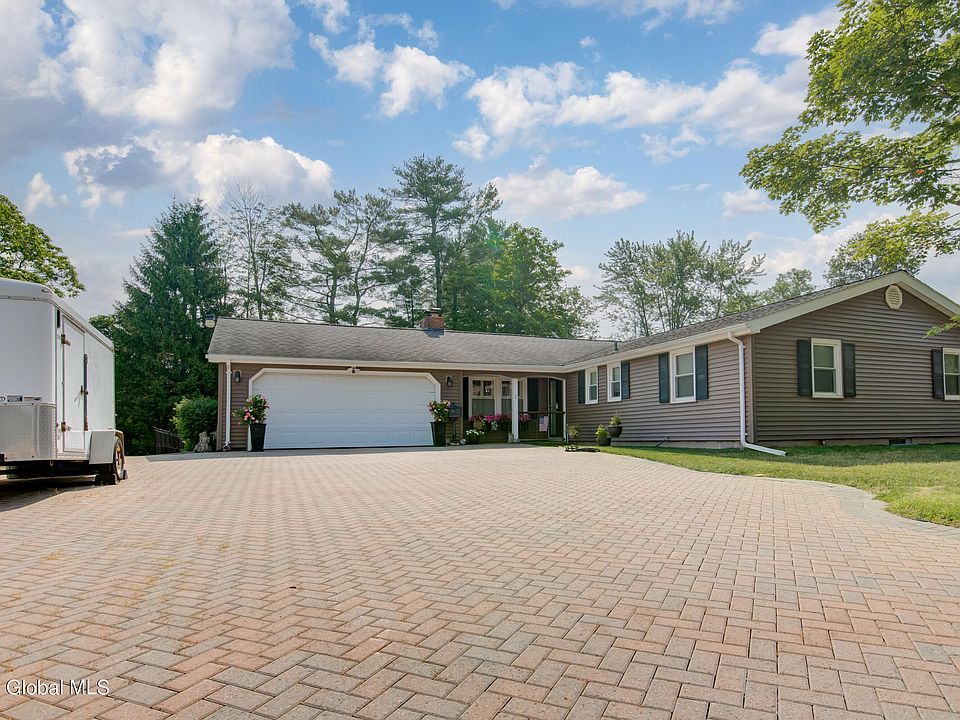 Welcome to this stunning South Johnstown ranch on a spacious corner lot! The home boasts a large eat-in kitchen with oak cabinets and a cozy wood-burning fireplace. The expansive living room, three bedrooms, and two full baths provide ample living space, with the primary bedroom suite offering a touch of luxury. Enjoy the enclosed sunroom with French doors and a pellet stove, perfect for year-round comfort. The finished basement with built-ins is ideal for entertaining. The expansive yard features a covered, fenced patio, a two-car garage, and a shed for storage. Don't miss the chance to make this house your home!