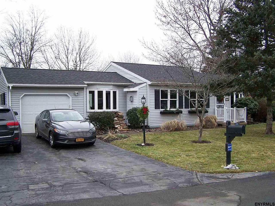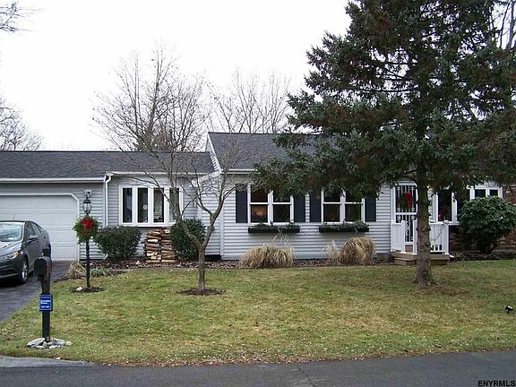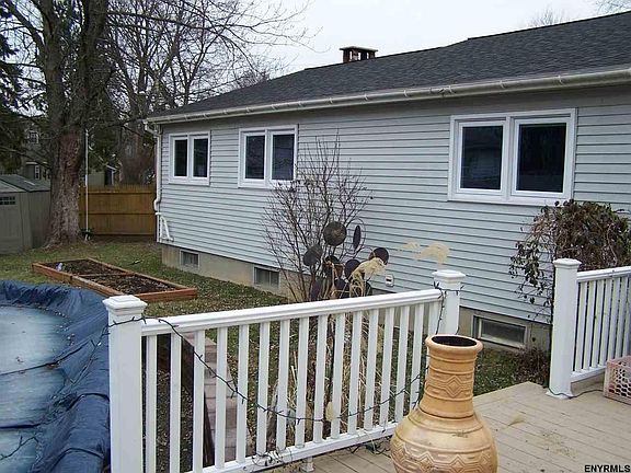 Beautiful expanded Ranch with 1 car garage, fenced rear yard with 15 x 33 Oval Pool. Living room with fireplace, dining area, kitchen with fireplace, 3 bedrooms, 2 full baths, family room, plus partially finished basement. Large deck with screened-in porch. Hardwood floors, newer heating, A/C, tankless hot water, windows, & roof. Upgraded kitchen with new countertops and tile back splash being installed. Recently painted interior. Vinyl siding, great neighborhood. Easy access to EG, Albany, and highways