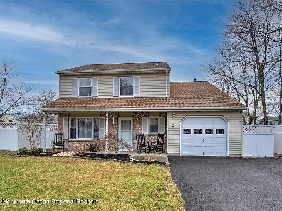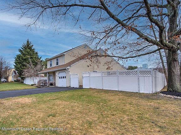 Beautiful upgraded and super clean home, ready for the fussiest buyer. Updated kitchen with quartz counters, maple cabinets and ceramic floor. The dining room opens to the deck with retractable awning and over looking the spacious yard with above ground pool and three sheds. White vinyl fencing surrounds this over-sized corner lot. The formal living room, dining room and family room, complete the first floor. The garage has been converted to a multi-use bonus room plus storage space but can be converted back. On the second floor are three spacious bedrooms with laminate floors. The bathrooms have been remodeled and double driveway is newly paved.