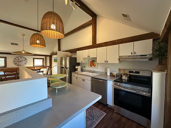 Your at home retreat awaits in this beautifully updated one-bed, one-bath apartment. Nestled above a serene pilates studio offering an exceptional blend of privacy and tranquility. Step inside to find a space transformed by a professional interior designer, featuring modern conveniences like central air-conditioning with a cozy rustic wood beam ambiance. The apartment comes fully furnished and move-in ready, allowing you to enjoy your new home without the hassle of setup. Cook with ease in the well-appointed kitchen, complete with brand new appliances, including a dishwasher. The convenience continues with an in-unit washer and dryer, and one designated parking spot. Enjoy the best of Warwick with quick access to coffee shops, restaurants, and all the amenities this vibrant area has to offer. Don't miss the chance to make this stylish apartment your new home schedule a tour today! Tenant responsible for propane, electric, cable/wifi. Landlord provides snow removal, trash and water. Recycling to be set up by tenant and is free. Apartment comes with one designated parking spot. Located above 94 Pilates. Landlord covers broker fee, tenant responsible for deposit upon lease signing equal to one month rent. No pets, no smoking.