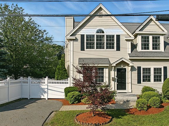 Forget the compromises of single-family homes! This 2007 end-unit townhome delivers the dream list: soaring ceilings, versatile layout, and coveted 2-car garage. Sunlight streams through the open-concept main level, highlighting gleaming hardwoods and a crisp white kitchen with granite and stainless steel. First-floor bedroom suite with full bath offers endless possibilities - private quarters, office sanctuary, or luxe main-level living. Upstairs primary suite impresses with dual walk-in closets and romantic fireplace, plus two additional bedrooms. Fenced yard and deck create perfect outdoor living spaces for pets and play! Modern construction means carefree living. Steps from town center, commuter rail, and highway access. Finally - space, style, and location with townhome convenience.!