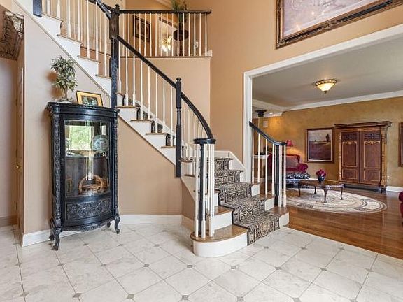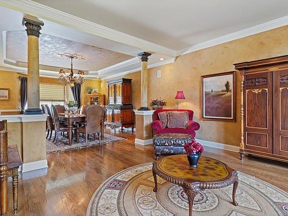 A Truly Stunning Home w/ Upgrades Galore! Marble fl in 2 story foyer, Kit w/ granite ctr, center isle, tumbled marble backsplash, Prof grade & top of the line appl- WOLF 6 bur Stove w/ griddle, Electrolux full size refrig & freezer, Wolf microwave and ice maker complete this chef's kit! Fam rm w/ stone FP, back staircase and sliders out to a travertine marble patio. Which leads into a gazabo, refreshing pool w/ hot tub, custom pizza oven and a fountain for great entertaining. Hardwood floors on first fl, den/office can be a 5th bdrm option, full bath on first floor. Beautiful plaster, dentil and crown moldings in home. MBR suite w/ dbl doors, tray ceiling, office area, WIC and large MSTR Bath w/ dbl sink and jacuzzi tub. Jack & Jill bath. Fin basement has spacious rec rm, w/ half bath, temp controlled wine cellar and large movie theater with MACINTOSH system in place with lighting and stadium seats that is all included! Close to schools, highways and shopping! Don't miss the opportunity to own this wonderful home!