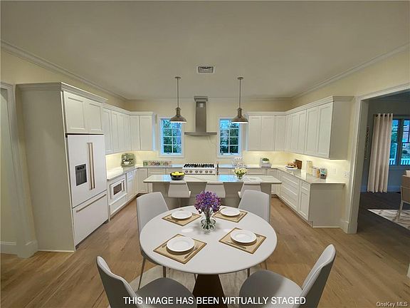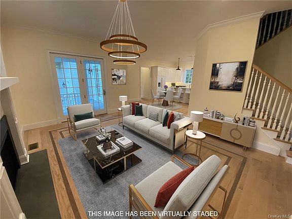 This stunningly designed, newly built 3,200 SF modern Victorian style home sits on nearly 1/3 an acre with a private backyard in the Village of Rhinebeck. The style reflects the traditional appearance of an older home with classic details like the round tower and expansive wrap-around porch that welcomes you inside. When inside you will notice the open floor plan embracing today's lifestyle. The main part of this home is a 3-bedroom, 3.5 bath home with a full, unfinished basement. An additional unfinished 500 SF above the two-car garage has been approved as a separate bedroom, full bath with plumbing for a kitchen and a separate entrance. Perfect for extended family, private office or possibly income producing. The grand staircase greets you inside the front entry, with substantial 10' ceilings and notable crown molding details throughout. To the left of the entry, is the round shaped room that can be used as an office/den, library, or formal living room. To the right, you'll find a formal dining room. As you move through the rest of the first floor, you'll find an impressive kitchen. A two-tiered island, with a sink and dishwasher, sits in the center, perfect for cooking and entertaining with guests in the adjoining open family room. A fireplace, windows and glass doors with access to the porch makes this the perfect entertaining space for family and friends. At the other end of the main floor a mudroom/laundry room can be found with plenty of storage space and a powder room. This area is a perfect bridge between the home and the garage. As you make your way up the circular staircase, you'll find a primary bedroom, a walk-in closet and an impressive bathroom, double vanities, a soaking tub and walk-in shower help make this a wonderful space to revitalize. Two additional bedrooms with en-suites complete the second level. The lower level of the home is unfinished with high ceilings, additional plumbing capabilities for a future bathroom and an egress window. The property includes lovely landscaping, paved walkways and a bluestone patio creating an opportunity for indoor/outdoor entertaining. Located a few short minutes from the village with plenty of shopping and restaurants makes this home ideal. Taxes shown are for land only.