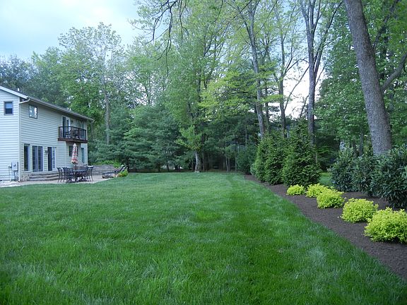 Kitchen with granite, island and stainless steel appliances. Sun drenched with skylights, this home boosts two stacked stone fireplaces, hardwood floors, patio off kitchen, deck off family room & balcony off master bedroom. 4th bedroom is used as a sitting room. 5th Bedroom is used as guest bedroom on lower level. Library can also be used as 6th Bedroom. New roof, heat pump, ipe deck and balcony, and stone patio with fountain. Finished basement including bar area/kitchenette with granite countertops.