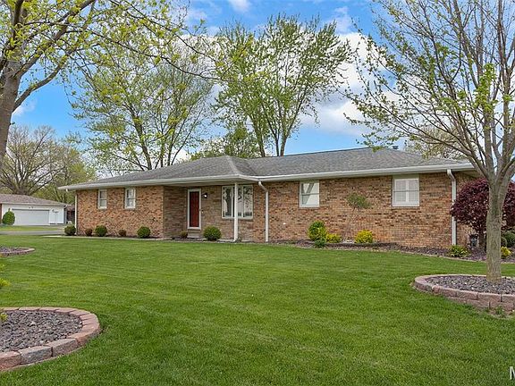 Showings start Thursday, April 24th! Open house Saturday, April 26th from 12-2 pm. This beautifully maintained 3 bed, 3 bath all-brick home sits on a corner lot with stunning views at the edge of town. Inside, you?ll find quartz countertops, a cozy gas fireplace, and two spacious living areas on the main level. The finished basement offers an additional family room with a bar?perfect for entertaining! All appliances stay. Major updates include a new HVAC (2021), roof (2018), and brand new electrical panel (2025). The landscaped yard includes a utility shed, and the home features abundant storage throughout. A true gem with space, style, and comfort!