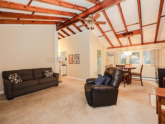 Imagine stepping into a cozy and charming 3-bedroom Ranch that feels just right, whether buying your first house or looking to downsize. The vaulted ceilings with wooden beams create a spacious open atmosphere, making the home feel even more inviting. The living and dining areas flow seamlessly, centered around a warm gas fireplace that adds a cozy touch. The kitchen, though compact, offers plenty of cabinet space, a refrigerator, and an electric stove, making it a practical spot for meal prep. A full bath, AC wall unit, and direct access from the garage complete the living area. The house sits on a well-maintained corner lot, giving it great curb appeal. Plus, there’s a two-car garage for your vehicles and extra storage. Downstairs, you’ll find a full basement with laundry hook-ups, offering even more space for your needs. The home features a newer roof and the interior was painted last year. The flooring is a mix of hardwood, carpet, and tile, adding variety and comfort to different areas of the house.