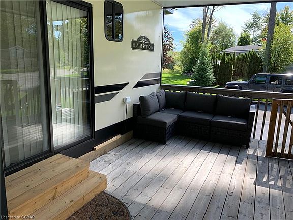 Seasonal RV in Wasaga CountryLife Resort- 7 month occupancy. Looking for an extended resort RV, but don't want to sacrifice your creature comforts? Look no further than the Hampton. Hampton has been designed and engineered to feel like home. Rich stainless steel residential style appliances, Hardwood raised panel cabinetry, and abundant storage await you. Sleeps 10 people and comes with dishwasher, washer, dryer electric recliners with heat and massage, fireplace and so much more. 7 yr extended manufacturer warranty, in ground irrigation and 8x10 storage shed also included. Low maintenance fiberglass exterior and lifetime roof membrane. 2 A/C units will keep you cool on those hot summer days and plenty of shade under the 28 foot hard roof for relaxing outside. Extreme weather package includes upgraded insulation, furnace and heated underbelly. Wasaga CountryLife Resort offer 5 pools, splash pad, mini golf, tennis courts and access path to the Beach. Seasonal Site fee 2021 is $4960. plus HST. Don't miss out on this affordable home away from home. Call today for your private tour.