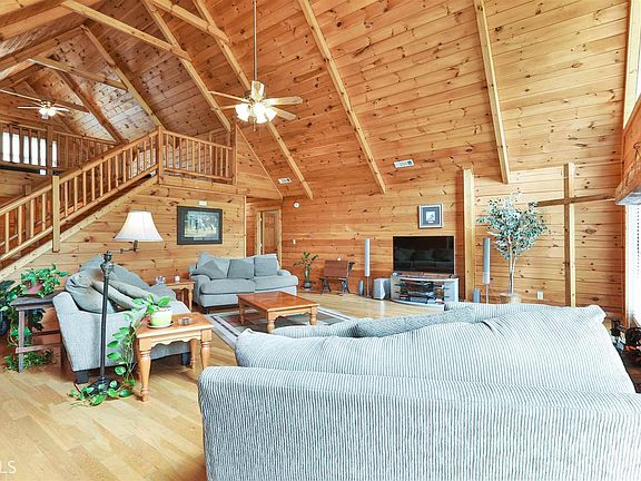 Welcome to This Beautiful Log Cabin Located on 12.31 Acres! Entry Brings You to Great Room w/ Vaulted Ceilings, Exposed Beams, & a Beautiful Stone Fireplace. Hardwoods Throughout! Spacious Kitchen w/ Breakfast Area, Island, Tile Floors, & Nook Sitting Area w/ Windows Overlooking Property. Walk-In Pantry & Laundry Room Located w/ Utility Sink Located in Hallway. Master on Main Level w/ French Doors to Front Porch. Double Vanity, Tile Shower, Whirlpool Bath, & Walk-In Closet in Master Bathroom. Additional Bedroom & Full Bathroom Located on Main Level. 2nd Level Brings You A Loft Sitting Area Overlooking Great Room. Basement Is Equipped w/ Large Living Room, Full Kitchen and Breakfast Area, Full Bathroom, and 4 Bedrooms. Large Back Deck w/ Wrap Around Porch!