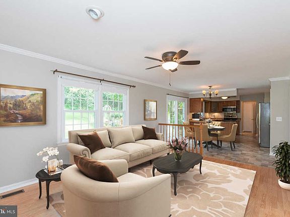 This rarely available colonial is situated on a quiet cul-de-sac. Backing to Gunpowder State Park with more than an acre of land, the setting is peaceful and serene. Inside you'll find a renovated eat-in kitchen with stainless steel appliances and granite counters with under-cabinet lighting. It opens to the large family room with gas fireplace, while the formal living room and dining rooms have hardwood flooring and decorative moldings. The laundry is located on the main level for added convenience. Upstairs, you'll enter the master suite through french doors, where the walk-in closet and dressing/vanity area lead you to the master bathroom with soaking tub and separate shower. The additional bedrooms are spacious and share a full bathroom in the hall. The lower level is also finished with a large rec room, office/den and storage room. Enjoy outdoor entertaining with the large patio with knee wall, gorgeous gardens and beautiful gazebo. Additional exterior storage can be found with the home's matching shed, and there is plenty of parking - including a two-car sideload garage. Some of the recent updates include fresh paint, brand new energy-efficient windows throughout, new roof and a back-up generator.