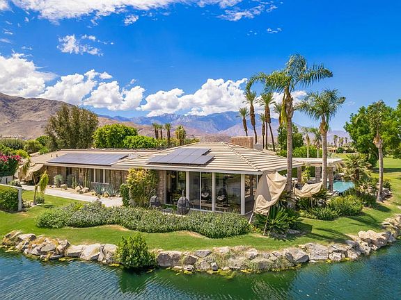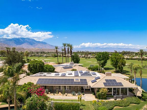 Presenting an exclusive opportunity: a premiere home, stepping onto the market for the first time, poised in a prime location alongside a tranquil lagoon, boasting breathtaking views of the adjacent golf course and majestic mountains. This expansive abode is a haven of sophistication and comfort, perfectly situated to offer an unparalleled living experience. This spacious dwelling of 4,473sqft with 3 bedrooms and 3.5 bathrooms, entices with high ceilings and recent updates, including new ducting, A/C unit, Nest system, garage doors, cabinetry, & interior painting. Smart features encompass Sonos speakers, automated blinds, and security wiring. Embrace sustainable living with leased solar panels that lower electricity costs, while the new tinting on the 24 panel skylight has significantly lowered interior temperatures, underscoring the commitment to enhancing comfort and energy efficiency. The landscape has been thoughtfully rejuvenated, enhancing the allure of the property. Situated within the highly sought-after Club at Morningside golf community, this residence offers not just a home, but a lifestyle of distinction. The location provides easy access to Eisenhower Hospital, while a mere 10-minute drive leads to the upscale shopping and dining district of El Paseo. For travel convenience, Palm Springs Airport is a short 20-minute journey away.