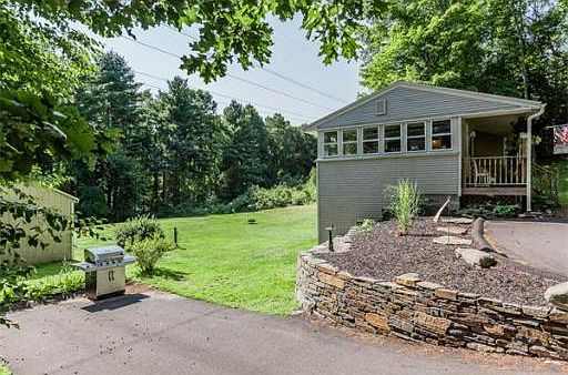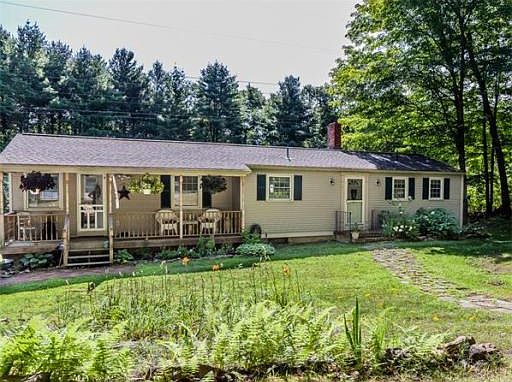 Beautifully landscaped and decorated 2 bedroom 2 full bath home that has been well cared for and maintained. Lots of updates and replacements. Beautiful sunroom to enjoy the seasons,,,,,farmers porch.....walks out to a totally private and spacious back yard. Large storage shed......attractive stone walls and gardens....off the main road allowing total privacy yet convenience to Granby center, South Hadley and Amherst within minutes. See agent for list of upgrades and updates. Closing at convenience to Buyer. Title V will be done. Western Mass Electric has easement through the rear of property.