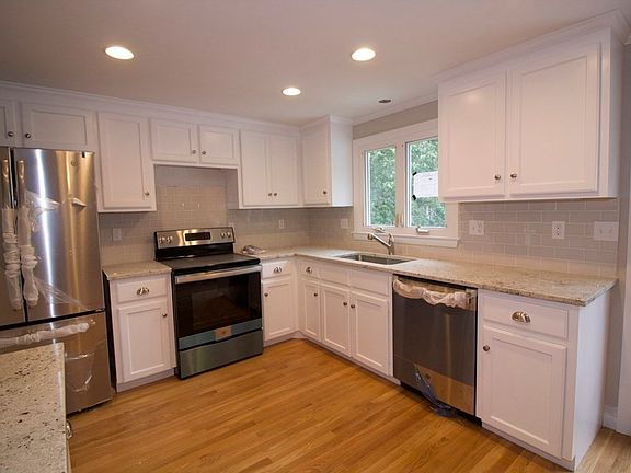 Charming, Split-level home within walking distance to the Town center, Schools, Restaurants, Parks and Shopping. Beautiful Renovations are just about complete : New roof, fantastic new kitchen with white cabinets, granite counters, tile back splash, SS appliances, new tile bath on the main level with large double sink vanity with granite counters and access to the hall and primary suite, second bath on the lower level, two fireplaces, fresh interior paint, refinished hard wood floors, new carpeting in the family room, new deck and screened porch plus professional landscaping and sprinkler system. Storage space available in the utility room in the lower level. Storage shed on premises will be painted. Come see the updates. Only thing left to do is choose your lighting and move in. Welcome Home! Call for your private showing.