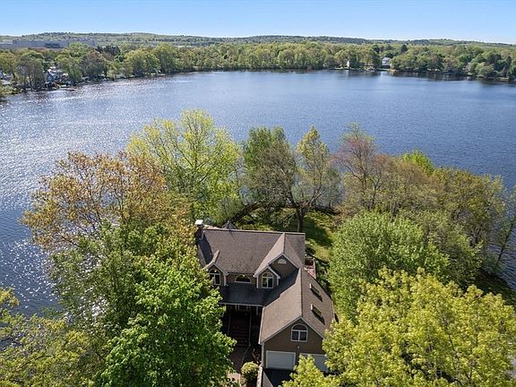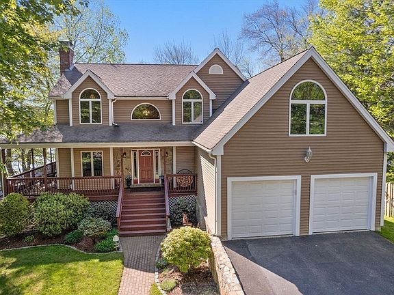 WATERFRONT on Lake Waushakum! Custom built 4 BR colonial tucked away on quiet side street in treasured neighborhood. Spectacular water views through large Anderson windows and sliders throughout! Kayak, boat, water ski, tubing, fish, swim or simply relax from your own private beach w 250' water frontage. Open floor plan w hardwood floors & large Welcome into 2 story foyer w 1/2 bath, spacious living room w fireplace, dining room, granite kitchen, cedar screened porch & wrap around deck. Pantry & laundry completes 1st floor. Upstairs offers primary bedroom suite w matching walk-in closets & Jacuzzi tub, plus 3 add'l bedrooms & bathroom. Central A/C & vacuum, gas heat & cooking, 200Amp electrical. Attached 2-car garage. Partially finished basement w office, wet bar & walkout to private level backyard with fire pit, dock area & prof. landscaping. Enjoy a nature paradise yet minutes to train, major routes, shopping, restaurants, 1 block to playground w tennis & baseball. A MUST SEE!