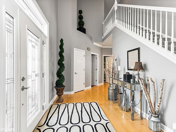 Impressive entry through the front door as you take in the open and spacious floor plan of this Summerhill model. With hardwood floors throughout, this home has so much to offer. A formal living and dining room adorned with dramatic ceilings leads you to the upgraded gourmet kitchen boasting 42"Maple cabinets, newer quartz countertops, and custom backsplash. Newer stainless-steel appliances, recess lighting, crown molding, and breakfast island with eat-in area complete to heart of this home. Newer sliding glass doors lead you to the stunning 3 season room featuring vaulted cedar ceilings, hurricane filmed windows, a tv/bar area, recess lighting, doggie door, and adjacent to two outdoor areas, making this home perfection. Not to be outdone, the sizeable family room showcases a stone surround gas log fireplace that can also be converted to a woodburning option. French doors lead you through to the den/office space, featuring recess lighting. A convenient laundry room completes the first floor. Make your way upstairs to the primary luxury suite that includes tray ceiling, massive walk-in closet, a separate spare closet, and a luxury on suite. With a separate soaker tub, dual vanity with upgraded faucets, a shower featuring glass doors, and a skylight this primary bath could you be your own private oasis. The second and third bedroom are of ample size and share the Jack-n-Jill bath. The fourth bedroom to showcase the upgraded princess suite with a full private bath and walk-in closet. A full basement highlights 9ft ceilings, roughed-in bath, and framework ready for your finishing touches. Professionally landscaped surroundings make this backyard your own retreat. Easy maintenance provided to your outdoors with a sprinkler system and 6ft wrought iron style fence with grand double lock gates. Extensive brick work done has been done throughout the front and back, giving you many areas for entertaining, complete with a hot tub. This home was freshly painted (2023), has new carpet (2023), a High Efficiency hybrid furnace (2022), central a/c (2022), hot water heater (2021), roof (2018), and upgraded replaced windows throughout (2005). Don't miss out on this meticulously maintained home situated in a cul-de-sac of the desirable neighborhood of Algonquin Lakes featuring walking/biking paths, elementary school, park/playgrounds, basketball courts, baseball fields, frisbee golf and so much more... Hurry this one will not last long!
