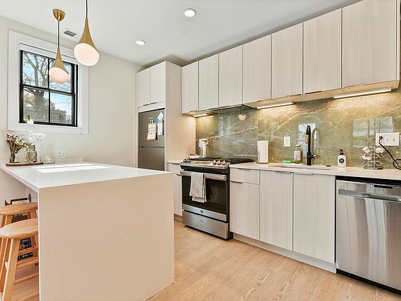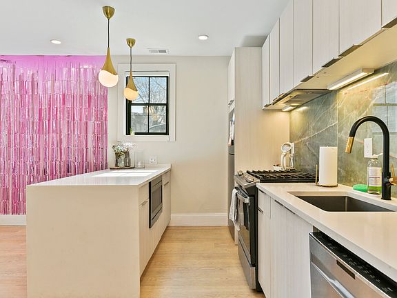 Welcome to this beautifully renovated (to the studs) 4 bedroom & 3 FULL bathroom bi-level unit located in the heart of Jeffries Point. Apartment is just over 1700SF and features large bedrooms with ample closet space. Private outdoor space perfect for enjoying a warm evening is enclosed by a beautiful wood fence and offers plenty of space for patio furniture and bicycles. Open kitchen and living room layout with custom black frame windows flooding the home with natural light. The kitchen features flat panel cabinets with brass accents and stainless steal appliances. The unit also features unique designer-lighting in every bedroom, bathroom and lining the stairwell and entryway, as well as dimmers. Wood panelling accents and tiling add to the home's charm. Washer/Dryer located in unit! Central air-conditioning, forced hot air and hardwood floors throughout complete this rare offering. Just 1 block from Starbucks and easy access to the Ted Williams tunnel. 1 stop on the newly renovated blue line to North End, 2 stops to State Street. Also just a five minute walk to the Maverick T stop and two blocks from Jeffries Point's Navy Yard with access to the water ferry which runs every 20 minutes to Seaport, North End and Charlestown. Grocery, shopping, gyms/yoga studio and restaurants all within a few blocks from your front door. Welcome home! Gut renovated in 2022.