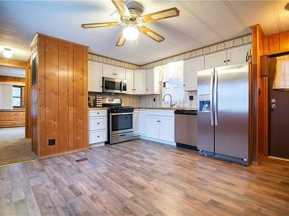 MOVE RIGHT INTO THIS 2 BED BATH HOME. BRAND NEW EAT IN KITCHEN. ALL APPLIANCES STAINLESS STEEL ALSO BRAND NEW. NEW CARPETING THROUGHOUT. NEW AIR CONDITIONING SYSTEM. MAIN BATHROOM COMPLETELY RENOVATED. REPLACEMENT WINDOWS. CORNER LOT WITH SHED. AMPLE PARKING. COME TAKE A LOOK AT ALTERNATIVE SINGLE FAMILY LIVING. MOBILE HOME BEING SOLD AS IS.