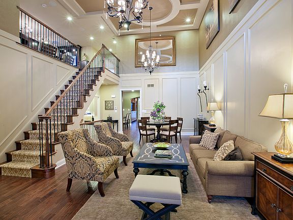 Elegant style and appointments. The Shannon's welcoming two-story foyer flows into the flex space and dining room and offers a glimpse of the loft above. The well-equipped gourmet kitchen is complete with a center island with a breakfast bar, ample counter and cabinet space and has open views of the spacious great room with a vaulted ceiling. The secluded primary bedroom suite features a large walk-in closet and private primary bath with a luxe shower with a seat and a dual-sink vanity. The secondary bedrooms feature walk-in closets, a shared hall bath and are centrally located off the spacious loft. Additional highlights included a convenient powder room, laundry room and plenty of storage throughout.