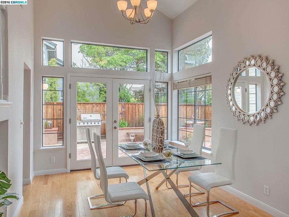 Light-filled 2-story charming home in Harbor Bay on a tranquil street near ferry. Bay and lagoon trails nearby. Newly revamped with hardwood floors, ceramic tile, carpet, French doors, landscaping and more. Lovely back patio and deck. All Section 1 pest work completed. Leased solar system.