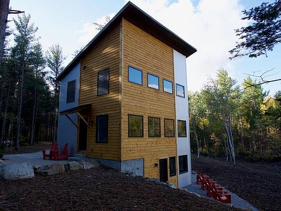 Welcome to Mason Township. Here you will find the home known as the Magalloway. The Magalloway is rugged and bold, Just like the river it is named after. Blending long lines and modern simplicity, this model was designed to blend into the tall surrounding pines. The lot lends itself to expansive views from all three levels. The interior sports one and a half baths and two bedrooms. The great room in the daylight basement can easily be accommodated with bunks, giving space to sleep large groups. The use of local sustainable pine is used throughout. Built into the plan is a modern kitchen layout with granite countertops. First time being offered on the market. Built in 2017 as a model home, nobody has yet to live here.