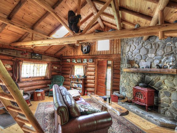 CHAIN OF PONDS - Camp ''Natanis'' a quintessential log cabin built in 1916 located on Long Pond. Excellent fishing and close to the Canadian border, Eustis and Sugarloaf Ski Area. Approximately 1.50 acres of owned land and 230 feet of shorefront with private dock. The property consisted of two buildings attached by a covered screened in porch. The kitchen camp offers full kitchen, bath, bedroom and loft area heated with a vermont castings woodstove. The sleeping cabin offers a large living area w/vaulted ceilings, Jotul Woodstove insert and field stone fireplace, 3 bedroooms, and full bath. Off the covered porch is a great outdoor shower with hot water to warm you up after a nice swim. Plenty of outdoor seating on a large covered screened porch. Great privacy, great camp. Property is being sold mostly furnished and in great condition. If you want to get away, call us today!