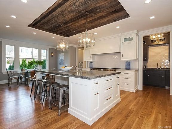 New construction in Old Greenwich on private rd with assn. beach. This 6 bed 5.2 bath has it all-open floor plan with chef's kitchen,family rm,living rm,dining rm,butlers pantry,mud rm & 2 powder rms. The large covered porch has an outdoor fireplace and access to town approved pool site. 2nd level has luxurious master suite, 2 guest suites and jack/jill beds & bath. 3rd level boasts the 6th bed, full bath and bonus rm for gym or media rm. The home is flanked by 2 large yards - one with the approved pool site and the other perfectly flat for games of soccer or football. Ledge Rd is a private, quintessential Old Greenwich lane & provides walking access to Greenwich Point, OG village and OG school. Home built by custom builder Garrett Wilson.