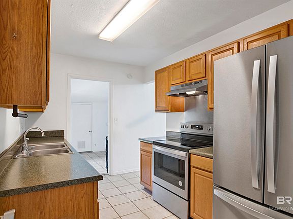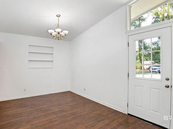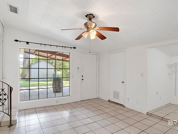 This precious Mid Century Modern home is nestled in the heart of Spanish Fort! You'll love this amazing large lot, and it's close to everything. The home has undergone some updates such as Luxury Vinyl plank flooring in the bedrooms and living areas, and tile floors in baths, kitchen and dining, as well as new exterior paint. As you enter in the front, you'll appreciate the spacious family room with an area for an office or breakfast area. Flowing into the kitchen, the cozy space offers charming natural wood cabinets, stainless appliances, including dishwasher, electric range and refrigerator! There is a step down to a large bonus room which is perfect for a large dining space or separate living area with stylish nooks. Off this room, you also have a laundry closet and large space for extra storage. The bedrooms each offer a nice closet and share a full hall bath. The main bedroom has its own half bath for convenience. Out back, there's a fabulous covered back porch and extra storage shed for all your outdoor toys and tools. This yard is so large and grassy, perfect for your fall barbecue parties. The roof and HVAC were replaced in 2019, and the front door has been replaced in 2024. This home is the one you've been looking for. It has been a rental for several years and could make a good income property. Seller has not lived in the home recently so makes no disclosures as to condition. Seller will consider making buyer concessions and any such concessions shall be requested in Purchase Agreement. Buyer to verify all information during due diligence.
