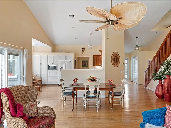 - Attic, Breakfast Area, Ceiling Fan(s), Cathedral Ceiling(s), Entrance Foyer, Eat-in Kitchen, Great Room, Kitchen Island, Living/Dining Room, Pantry, Sliding Glass Door(s), Solid Surface Counters, Window Treatments, Bedroom on Main Level, Main Level Primary, Primary Suite, Programmable Thermostat, Workshop