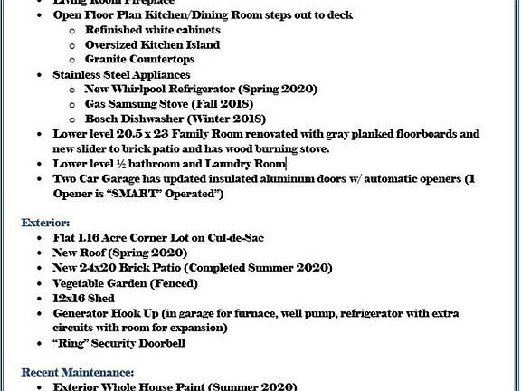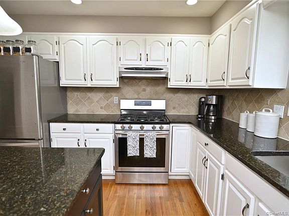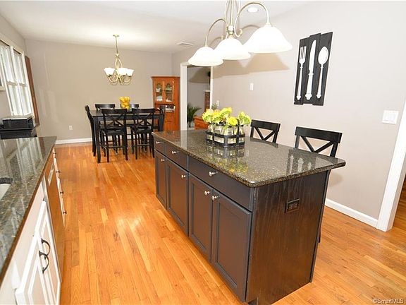 Welcome Home and Relax. Three Bedroom, 2-1/2 bath with Central Air Conditioning, Hardwood Floors throughout and 1+ FLAT acres offering low maintenance and private yard on cul-de-Sac. Many new updates: Brand New Roof, Exterior Paint and Brick Patio were just completed this Summer. Large kitchen with over-sized center kitchen island offering more cabinet and drawer space, granite counters tops and new appliances (2020 Whirlpool Refrigerator, 2019 Samsung Gas Stove, 2018 Bosch Dishwasher). Kitchen opens up to dining room space that steps out to deck. Lots of sunlight shining through the open floor space from kitchen/dining room into living room with fireplace. Newly renovated lower level has mud room area with closets, gray planked floors, wood burning stove, 1/2 bathroom and laundry room and newer sliders to new 19.2 x 23.4 brick patio (Cost $11K). 12x16 shed and fenced vegetable garden that produces much of natures bounty! Two car garage with newer insulated garage doors. Great central commuter location for down county, Hartford, New Haven and NYC. All this is awaiting your arrival. Whole house Duct and Vent Cleaning was done in Fall 2019. Pest Inspection and Pest Prevention was performed July 2020.