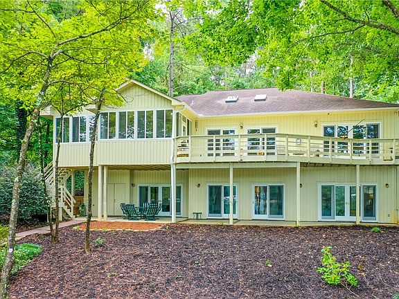 Welcome to 2 Lighthouse Court. Enjoy Lake Keowee, and the highly desirable and amenity rich Keowee Key neighborhood, from this beautiful and comfortable and very livable home. A RARE find! Situated on a gently sloping lakefront lot lot with a platform dock and located on a picturesque setting with great water views in very wide cove. The master bedroom and ensuite are on the main floor with double doors right down the hallway from the living room. The living room has a great view of the lake with built-in cabinets, wet bar and built-in ice maker. There is a three-sided gas fireplace between the living and large dining area with a spacious kitchen right around the corner ready for entertaining or just enjoying on your own. You will appreciate another large room on the main floor at the front of the house that is perfect for a library, den, or office with yet another full bathroom in the hallway right next to it. The main level has gorgeous and freshly refinished “Select Maple” hardwood floors throughout. Outside, on the main level, relax on the large screened-in porch, accessible from both the living room and master bedroom, or enjoy the large open deck overlooking the back yard and lake with fantastic views. Go down the stairs, with brand new carpeting, and there is much more living space on the lower level. Two bedrooms, two more full baths, and a large gathering room with new flooring, built-in cabinets and another wet bar. All rooms have amazing views of the lake! There is a very large patio area in the back and a brick walkway to the dock. And if that wasn't enough, there is a huge amount of extra "unfinished" square footage on the lower level - currently used as game room and two workshop areas; one with double door access to the back yard. You will love the enormous amount of storage and even a cedar closet on the lower level. This home is ready for loving the lake life on Keowee.