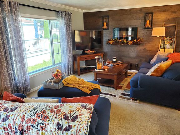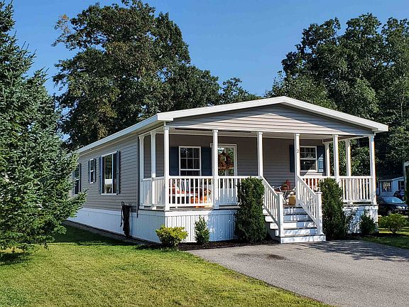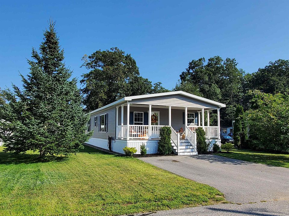 Welcome to Maple Leaf Village! Live less than FIVE miles from the seashore in your year round home OR your perfect summer home with golf, dining and shopping all around you. Pride in ownership shows as you step onto the expansive front porch and into this meticulously maintained home. Nicely painted sheetrock throughout adds to its bright and spacious open concept and a handsome accent wall with an electric fireplace truly adds to the living decor'. The picture window in the living area features "one-way" glass for complete privacy. The primary bedroom has a large, double closet, a full bath with linen closet and a large window that also features private, one-way glass. The second bedroom is perfect for guests and/or a private living area with a spacious single closet. There is a full bath and separate laundry area in the common hall with great storage options. Outside relax on the 24' 4" x 8' covered front porch and entertain on the 12 x 10 side deck with its attractive pergola covering. A rugged 8 x 10 shed awaits your yard tools and beach toys and there is abundant dry storage below the home on the clean crawl space slab. This home is truly turn key. No age restrictions - Only inside cats are allowed.