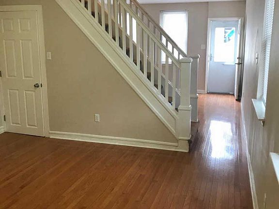 Wonderful rental end unit townhouse with basement. 3 bedrooms and 1 full bath on the upper level. Full bath on the main level. Private entrance to unit both from the front and rear of unit. Beautiful wood floors throughout the unit. Freshly painted throught out. Eat-in kitchen with stainless steel appliances.