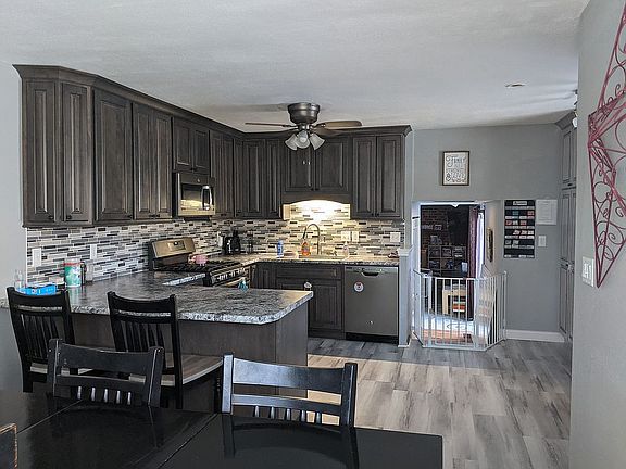 Beautiful 4 possible 5 BR home on quiet cul-de-sac in popular Sunset Hills! Wait until you see the gorgeous, completely remodeled kitchen by Deuce Development! Tons of sleek cabinetry with soft close feature, new countertops, breakfast bar, luxury vinyl flooring, and a coffee station with stunning quartz top. Other updates the past 3 years include but not limited to: custom 8' sliding glass door, HE furnace, A/C, some windows, solid wood interior doors & trim, master shower, half bath, most flooring, front & storm doors, water softener, basement dewatering system, exterior & interior of home repainted, and new wood shed. Black stainless steel kitchen appliances stay with the home. Main floor laundry hook-ups are available. Wood burning fireplace in family room, as-is. Great floor plan-perfect for entertaining; fenced yard; wooded area has an extension that leads to Sunset Lake. Lots of attic storage. Home sold "AS-IS". What's not to love, don't wait--see it today!