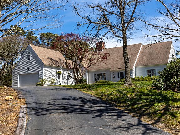 Pleasant Bay classic Cape with water views located in the exclusive East Egg offering an association dock, beach, and private mooring field for deep water boating to Pleasant Bay and the Atlantic Ocean beyond. This center entrance Cape residence offers a light and bright living space with beautiful wood floors, and high ceilings. A fireplaced living room with water views, an open kitchen with an adjoining informal dining area with a fireplace that joins a full glass greenhouse with views. A well-proportioned formal dining room is located off the main kitchen. Waterside first floor in-suite primary bedroom with a well-sized walk-in closet and direct access to the outside patio area. A second first-floor guest bedroom, half bath, and full laundry room finish off the main level. The second level offers 3 well-sized bedrooms, and an oversized full bath. A separate home office enters off the rear laundry area with fantastic privacy! The exterior has two separate patio areas, and room for a pool with water views!