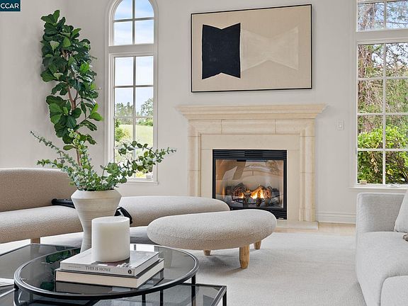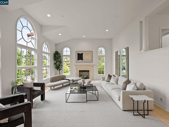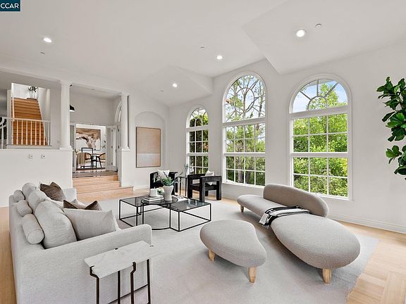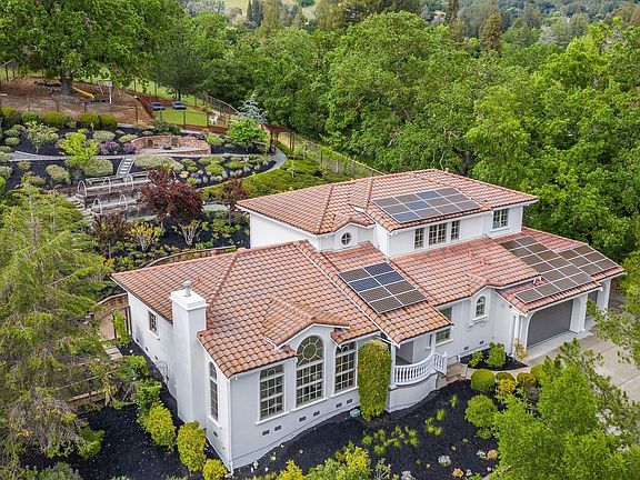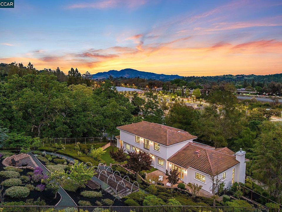 This elegant home, on a cul-de-sac easy walking distance to Lafayette restaurants and BART, enjoys a pastoral view to a terraced, fenced garden with mature white oaks encircling a large play area. Enter through a tiled entry hall, past a spacious office, to the large living room and fireplace; windows invite afternoon and twilight warmth and sun. The dining room seats 8, adjoining the well-appointed and newly painted kitchen with granite counters and an island, and multiple sinks and Viking and other appliances. Bright bamboo floors lead from room to room. The 4 bedrooms all have ample closet space. The laundry facilities conveniently adjoin the principal suite. A huge family/play room, with built-in bookcases and cabinets, lies upstairs, with views of the backyard terraces. A private driveway leads to a 3-car garage, equipped with a 220 volt outlet, with parking inside and out.