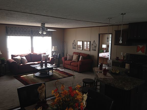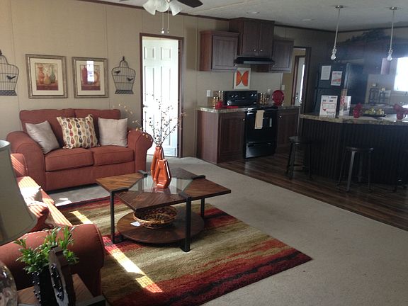 Brand new double wide. 3 bedroom 2 bath. Open floor plan for kitchen with island with breakfast area, dining area and living area. Cabinets have crown molding edging. Separate utility room. Bedrooms are large w nice closets. Master has walk in closet and separate shower. Must see!!