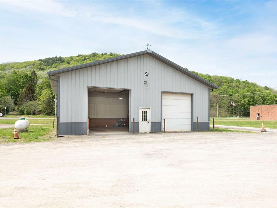 Spacious 40x50 steel building with 2 - 12' overhead doors located along the I-88 corridor in the Town of Worcester, Otsego County. The building is perfect for a mechanic, cold or heated storage, a place to park the toys, really the possibilities are endless. New propane heat installed and water is in the building.