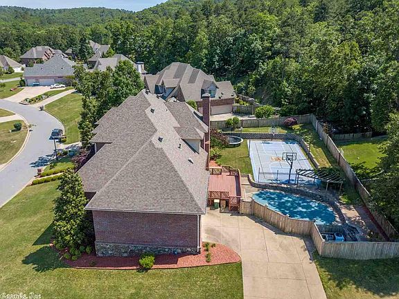 Executive home loaded w/extras. Brazillian cherry hardwood floors, iron/glass entry doors, plantation shutters, butlers pantry, chef kitchen w/6 burner gas cooktop, builtin refrigerator, granite, stainless appliances, island. Wet bar w/ice maker, sink & mini frig. Great outdoor area with inground pool & sports court. Large office & laundry down. Guest bedroom & master on main level. Loads of closet space. Roof 2015, paint & carpet 2017, gas logs 2017, HWH 2016, refinished hardwood floors 2017, fence 2019