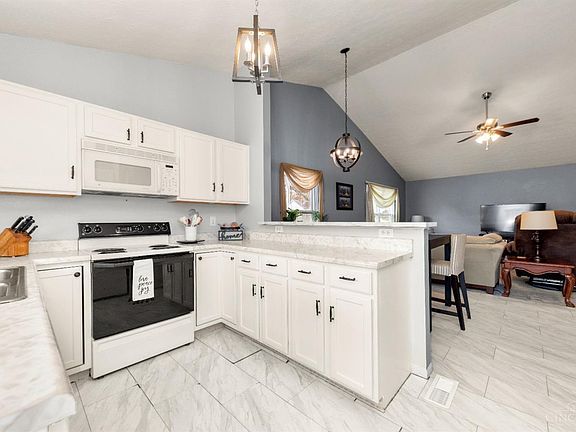 Lovely Ranch home with 3 bedrooms, 2 baths, 1st floor laundry and basement with tool bench on a flat yard! Features included-Open floor plan with cathedral ceiling, new light fixtures, new hardware, new faucets, & toilets, updated bathrooms, fireplace, new dishwasher, retractable awning for back patio, freshly painted, highly desired area that is close to many amenities. See feature sheet for updates!