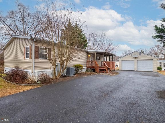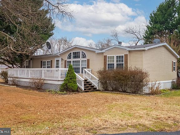 -- Highest and best offers by Sunday 2/16 at 5:00pm -- This beautiful 3-bedroom, 2-bathroom manufactured home sits on a desirable corner lot, offering privacy with gorgeous trees around the property, and is less than a mile from the C&D Canal. The extremely SPACIOUS 2 CAR GARAGE, shed, and paved driveway provide ample parking, storage, and convenience. The living room is a true showstopper, boasting vaulted ceilings, a stunning bay window, and a wood-burning fireplace with an open concept. The master suite features a large soaking tub, a stand-up shower, double vanity, and a walk-in closet. This home showcases new kitchen flooring installed 2 months ago, new carpet replaced in 2023, as well as brand new toilets and a brand-new hot water heater installed 1 month ago, ensuring move-in-ready convenience. Outside, you’ll love the large front deck and the spacious back porch, which includes a drop-down area prepped with water and electrical hook-ups for a hot tub! This area features elevated privacy railing to create a secluded and intimate retreat. This home is located in Chesapeake Estates - Lot rent is $695/mo. + water, sewer, and trash (additional $60/mo. ) - total: $755/mo. Don't miss this amazing deal on a home that blends comfort, functionality, and privacy. Schedule your showing today!!