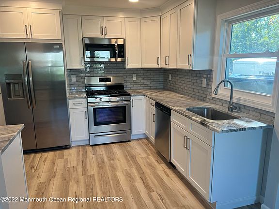 Rare Find!- Conveniently located in the heart of Hazlet, this beautifully renovated 4 Bedroom/ 2.1 Bath home has an open concept floor plan & is Turnkey & Move in Ready! It features: NEW Roof! NEW Siding! NEW Furnace! NEW Flooring! NEW Fresh Paint! NEW Front Yard Landscaping! NEW Windows in the spacious and insulated sun room! NEW Bathrooms! Completely Redone and Custom Kitchen with white cabinets, SS appliances, and gorgeous countertops with an eat-in breakfast nook. This home is nestled on a quiet street with a nice size yard and attached one car garage. A commuters dream- close proximity to GSP, HWY 35 & 36, and NJ Transit Train. Near to schools, shopping, and entertainment. As Is Sale. **This House is also listed to RENT-MLS #22237560