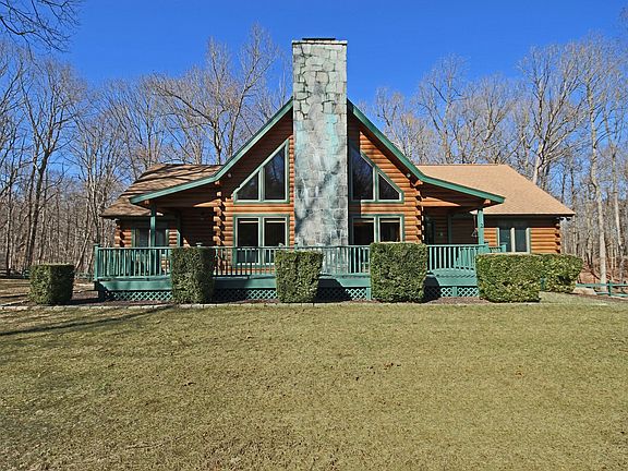 Custom built post and beam craftsman style home, hand built, log by log, by Northeastern Log Homes of Maine using the finest Eastern White Pine logs - a highly prized wood species. Set back privately on 2 picturesque acres on a quiet cul de sac in the sought after West Redding Umpawaug area, this country escape incorporates state of the art construction techniques: each log was stacked using 10" spikes and fitted with rubber insulation in between; 12" thick foundation; top of the line Anderson windows and Morgan doors. The charming design includes inviting wrap around open porches, colossal field stone chimney, plus rustic stone walls/walkways. Inside, the most impressive open great room awaits with 2 story timbered vaulted ceilings; central floor to ceiling field stone fireplace; and walls of windows for abundant natural light. Open to the dining room with atrium doors to the rear deck and cook's kitchen featuring custom cabinetry, stainless steel appliances, center island with bar seating, and professional gas range. Total 2,911 square feet with 4 bedrooms and 2/1 baths including gorgeous 1st floor master bedroom suite featuring timbered vaulted ceiling, walk-in closet and private bath. The main floor also features a separate wing with 2 additional bedrooms, shared bath featuring granite topped double vanity, and laundry room. Three finished floors including the upper level family room with balcony overlook and optional bedroom with half bath, plus finished walk out lower level w/fitness room and bedroom/office, designed and pre-plumbed as future 3 room in-law apartment with separate entrance.