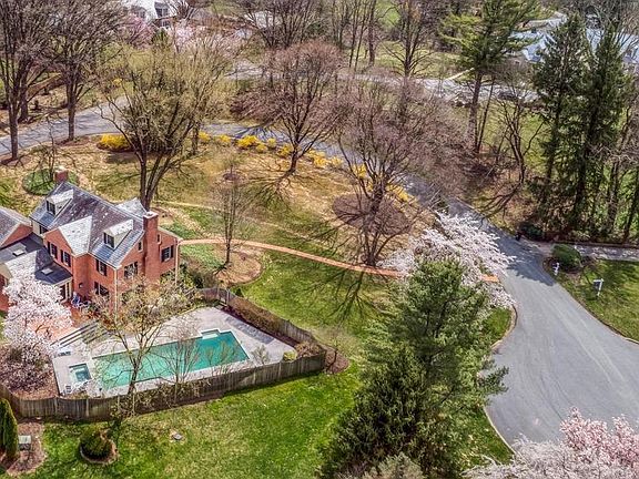 This beautifully updated all brick colonial on quiet cul de sac offers a multitude of indoor and outdoor entertaining spaces - and numerous and recent timeless renovations. Updates include new Anderson windows, refinished solid hardwood floors, all new carpet, and updated baths. The luxury master bath features radiant-heated marble tile floor, Carrara marble counter with two sinks, and large walk-in shower with seamless glass surround. A similarly renovated all white second bath offers a tub/shower combo. The white kitchen with granite counters, large island and stainless appliances opens to both family room with gas fireplace and sunroom with vaulted ceiling and skylights featuring a breakfast alcove, home office space, and sitting room with French doors leading to rear gardens. The finished basement includes a well-appointed laundry room, spacious recreation area for play or fitness equipment, a full bath and abundant storage. Enjoy the expansive brick terrace with blue stone sitting wall surrounding a heated pool and spa tub with waterfall.