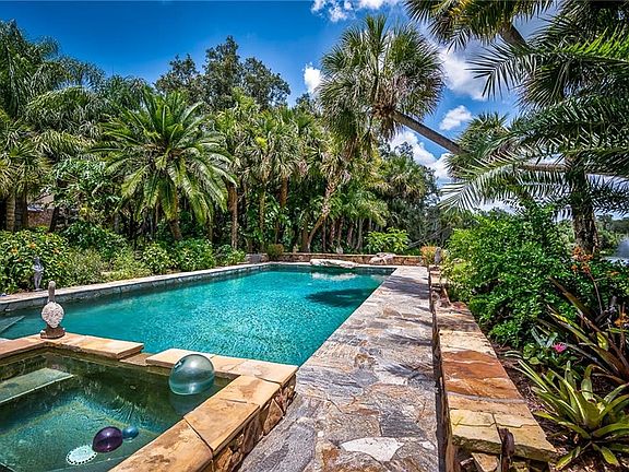 Eden House is located on 26+ acres. Beautiful botanical gardens surround the house and are home to voluminous tropical plants and trees. Humming birds and many varieties of butterfly and wildlife are frequent guests to this private garden oasis. A stroll through the grounds reveal many hidden secrets. A Koi pond, two deep natural lakes filled with warm spring water, horse pastures, and Prairie Creek makes this a special place where you can relax and reflect on the beauty of life. A private salt water pool and pool house is a perfect setting for family and friends to enjoy the Florida sun. A gazebo on the lake provides solace for those wishing to appreciate the sounds of nature. It is the perfect place for meditation. A wooden deck allows you to appreciate the view of the lake. The more adventurous can take their kayak and meander down Prairie Creek toward Charlotte Harbor. Horse enthusiasts can take advantage of the irrigated horse pasture and horse barn. The tennis court and basketball courts delivers the perfect opportunity for you to get together for team sports. A grass helicopter pad offers executives quick access to travel for those important business meetings. This is truly a unique and lovely home. It is a botanist, nature lover, and horse enthusiast's dream! There are four separate properties being sold as one. Experience your paradise at Eden House! Newly renovated Tennis Courts and Barn. Beautifully updated rooftop terrace with a view of nature at its best.