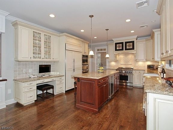Best deal in town! Gorgeous, 4,600 sq ft, fresh decor, open concept floor plan; beautiful, private, professionally landscaped property. Walk to schools, close to town and trains. Perfect for relo Chef's kitchen complete with center island/breakfast bar, farm sink, large separate breakfast area, french doors leads to "trex" deck. SubZero, Thermador 6 burner stove, double ovens, warming oven, wine fridge. Adjacent family room with coffered ceilings & gas fplc. Exceptional master suite with office/sitting room, 2 walk-in closets, luxurious master bath. Full, walk up attic offers ample storage. Basement with exercise room, rec room, great room, gas fireplace. 9' ceilings, 3.5" dark oak floors, generator. Pristine -move right in! Members of Rolling Hill Neighborhood-get to know your neighbors in social setting
