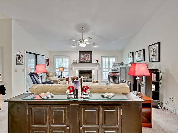 Warm and inviting one level 3 BR/ 2.5 BA home that is nicely updated and move-in ready! The kitchen features Corian countertops with a spacious center island, hardwood floors, built-in desk area and stainless steel appliances. This designer home is beautifully decorated with an open dining and living area highlighted by a fireplace. A bright sunroom adds extra space for relaxing and easy access to the deck for entertaining family and friends. There are two additional guest bedrooms and a master retreat that complete the main level living area. Immaculate condition! Perfect for retirement or second home getaway.