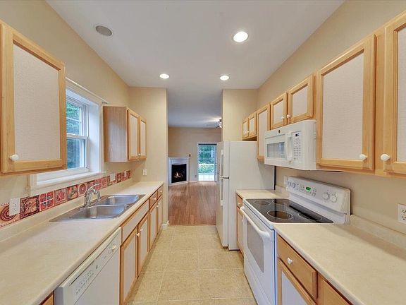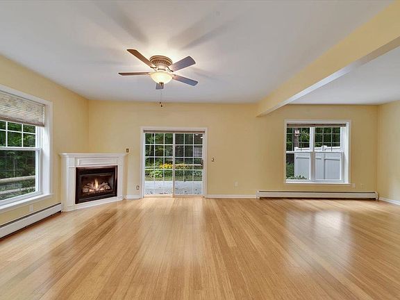 Welcome to this charming 2-bedroom, 2.5-bathroom end-unit condo located in the desirable Autumn Knolls development. This home is ideally situated in a fantastic neighborhood with easy access to a wide array of amenities, while offering the serenity of a conservation area right in your backyard—no future builds, just peaceful views! Upon entering the spacious foyer, you’ll appreciate the convenience of direct access to your attached garage, perfect for hassle-free winter parking. To the left, the bright dining area is bathed in natural light from large windows, creating an inviting space for meals. The kitchen, equipped with ample cabinet space, flows effortlessly into an oversized living room featuring a cozy built-in fireplace. Whether you’re relaxing or entertaining, this living area offers abundant room, with sliding doors leading to a private deck overlooking the tranquil conservation land. Completing the main level is a half bath and a convenient utility room with laundry. Upstairs, the master suite offers a peaceful retreat with its en-suite bathroom, dual sinks, full tub shower, and a generous walk-in closet. The second bedroom, equally spacious, shares a 3/4 bath with a versatile office space that could serve as a home office, gym, or guest room. With direct access to the bike path and a welcoming, quiet atmosphere, this condo provides both comfort and convenience. Don’t miss the opportunity to make this stunning home yours today!