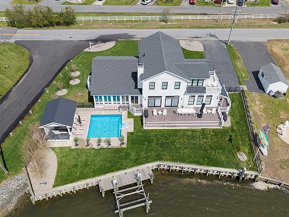Welcome to “The Boathouse” – where waterfront resort living meets timeless elegance on the Rehoboth Bay. Built in 2021 with top-tier finishes and thoughtful custom details, this exceptional home invites you to embrace serene water views, breathtaking sunsets, and the ultimate boater’s lifestyle. Designed for both relaxation and entertaining, the home features multiple living areas, including a cozy living room with a wood-burning fireplace, a lively party room, and a stunning four-season room with seamless access to the pool and outdoor entertaining spaces. Step outside to your private oasis, complete with a heated saltwater pool, pool house featuring a leathered granite bar, lounge area, gas fireplace, premium Lynk grill, lush lawn, and a private boat slip. Inside, you'll find two luxurious primary suites—one on the first floor, and an expansive second-level suite with a private sitting room and sundeck overlooking the water. Reclaimed hardwood floors, custom built-ins, and shiplap details add warmth and character throughout, while a full-service bar with accordion windows connects the indoors to the outdoor bar seating. The main living areas are enhanced by reclaimed hardwood floors, shiplap accents, and custom built-ins, including a beautifully crafted storage wall built under the stairs. The chef’s kitchen is equally impressive, outfitted with GE Monogram Professional Series appliances, quartzite countertops, and a spacious butler’s pantry with a convenient laundry chute. No expense has been spared and no detail overlooked—this is coastal living at its finest. Don’t miss the special features page.